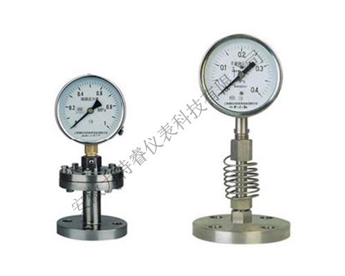 隔膜式壓力表是由膜片隔離裝置和配用壓力表兩大部分組成。廣泛應用于石油、化工、醫藥、食品、造紙等行業測量具有強腐蝕性、高粘度、易結晶及含有固體顆粒的液體介質壓力。